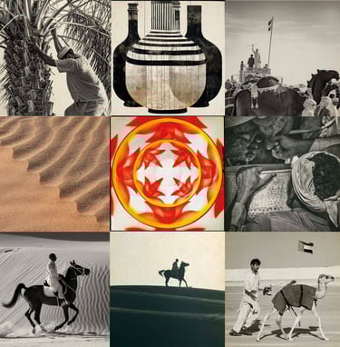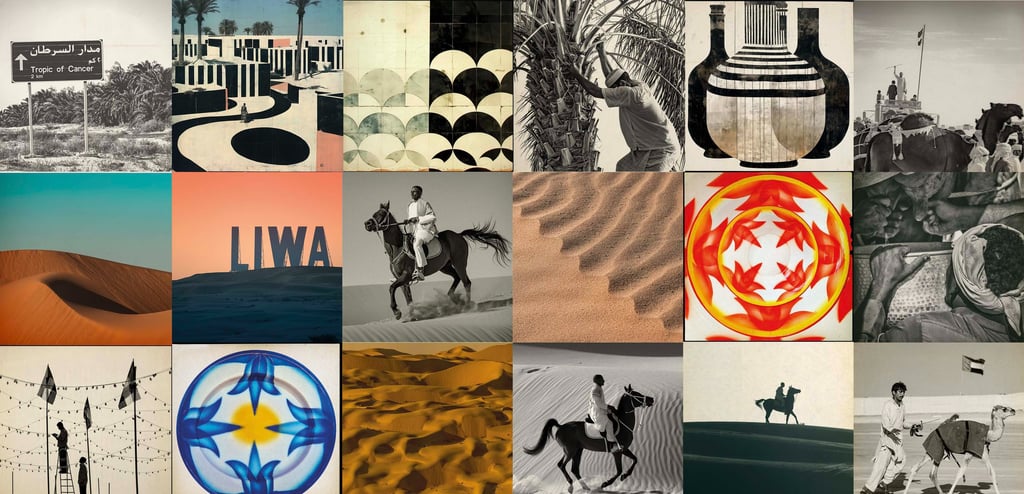 Original work reflecting the local heritage and character of Liwa, UAE. Art curation & procurement for a large-scale VIP development project based of traditional fort architecture. Gulf House Engineering is the development company that built the Presidential Palace in Abu Dhabi.